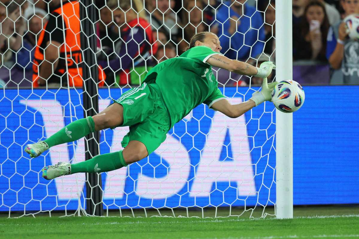 The German goalkeeper Ann-Katrin Berger embodied the spirit of resistance of his team in their quarter-final of the Euro 2025 while they bounced after an